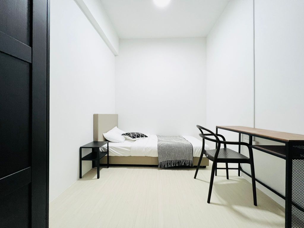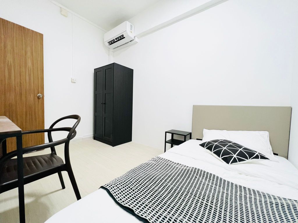 Ensuite room with window and your private bathroom. Equipped with aircon, workstation, super-single bed and 2-door wardrobe.